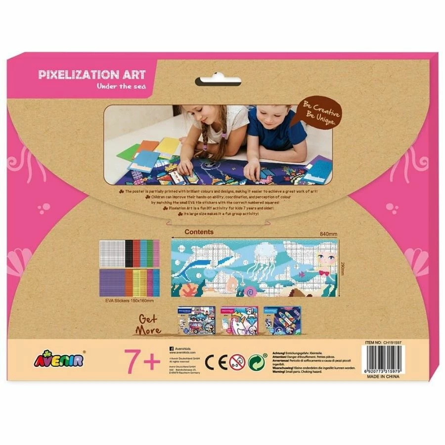 The Avenir Pixelization Under The Sea is an amazing giant poster partially printed with brilliant colours and designs of under the sea theme making it easier for children to achieve a great work of art.
