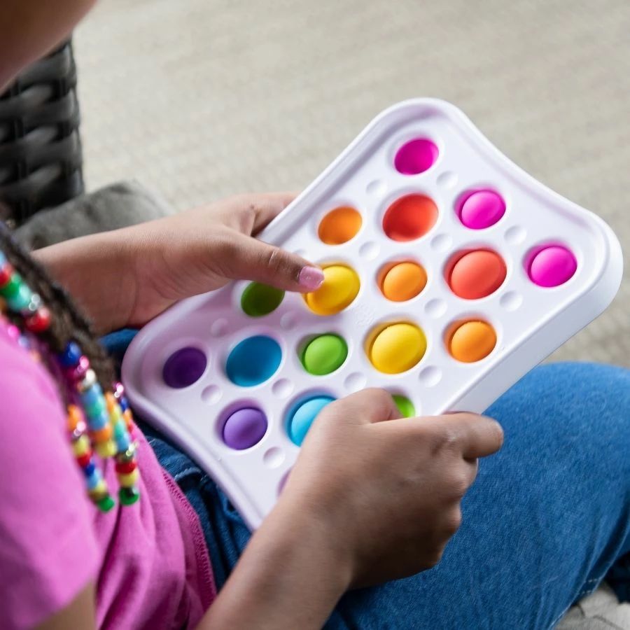 Dimpl Pops encourages fine motor skills, sensory learning, calmness, and motor skill sensory exploration.