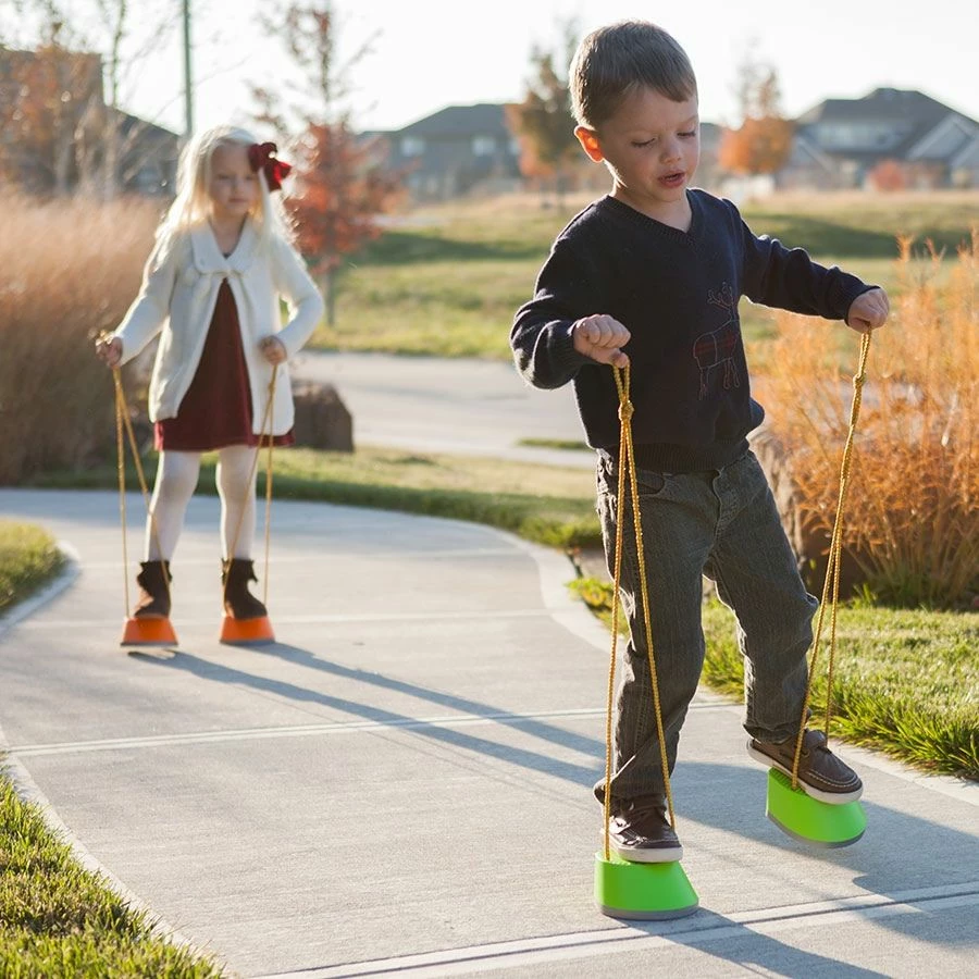 The raised height makes kids feel tall like a horse while the unique, concave underside makes every step they take sound just like clopping horseshoes.