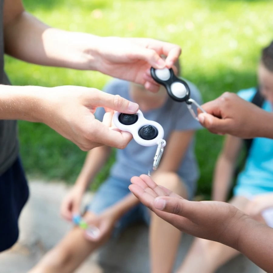 There’s no other toy quite like the Simpl Dimpl. It’s the perfect blend of simple and clever. The buttons are just textured enough to feel great, but not so much that it gets annoying. They’re easy to attach anywhere with their carabiner clips – whether you want them in your pocket or on your keys, they’ll always be close at hand when you need them most! And while this set comes with two black-and-white Simpl Dimpls, there are also colour versions available for all your tactile needs.