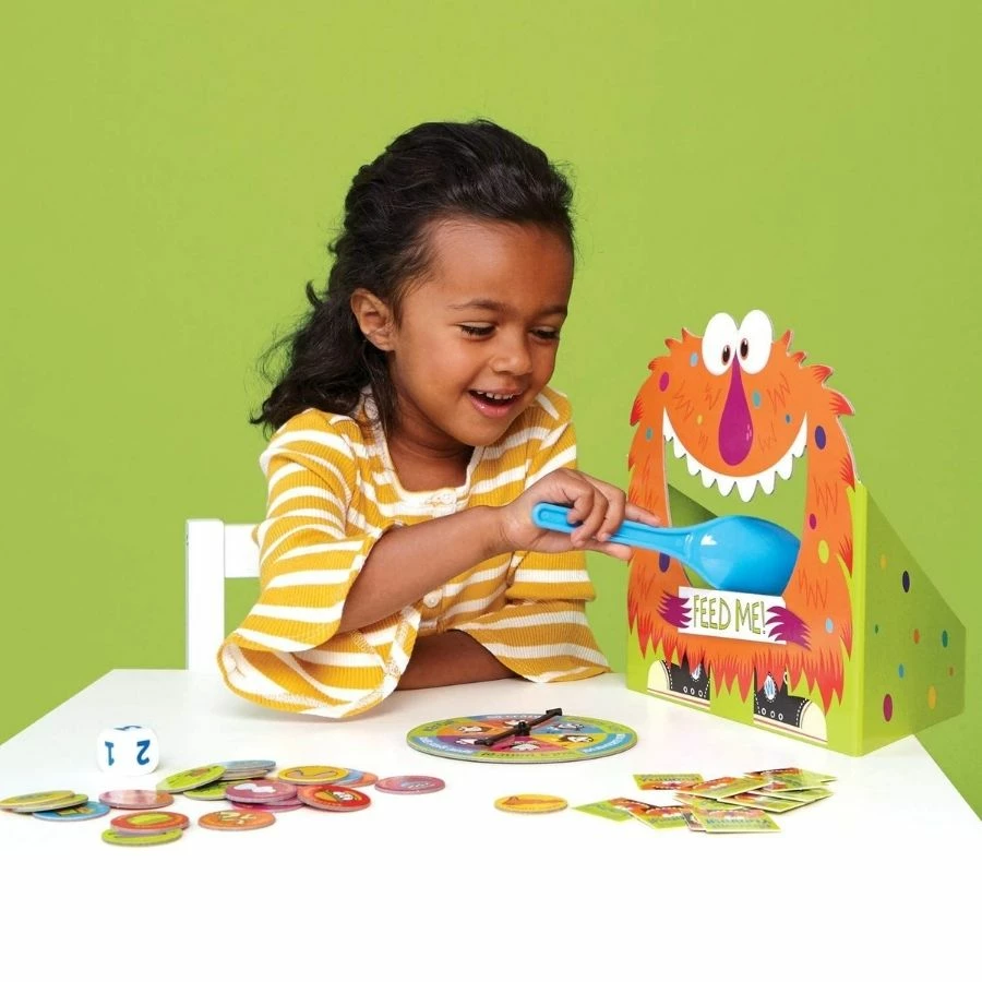 Can you feed him 12 silly snacks from the spoon before all the snacks are gone? Play together, work together, and have some monstrous fun!